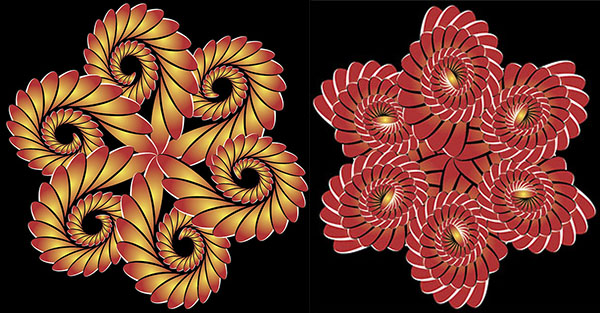 К каждой из полученных фигур можно применить команду Объект > Разобрать оформление. Это позволит работать с данной фигурой, как с векторным объектом, например, копировать в зеркальном отражении, поворачивать или создавать более сложные композиции. Такие фантазийные фигуры можно использовать для кистей или в качестве мотивов при создании новых принтов для полотна ткани.