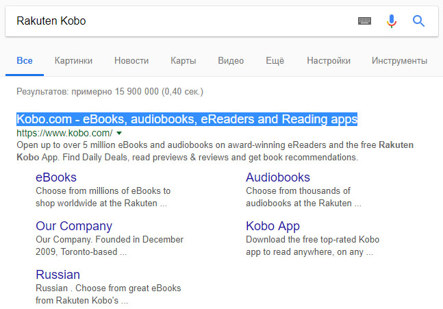 Результаты поиска дадут Вам ссылку на сайт Kobo.com.