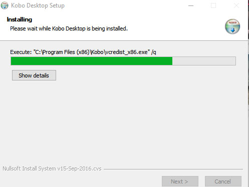Появится окно инсталяции приложения Kobo.