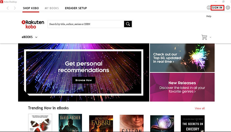 12. В открывшемся окошке приложения Kobo вам нужно нажать на линк "SIGN IN" (Войти).