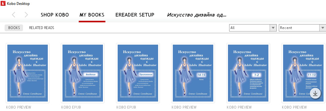 13. В открывшем окне приложения Kobo Вам нужно нажать на закладку "MY BOOKS" (Мои книги).