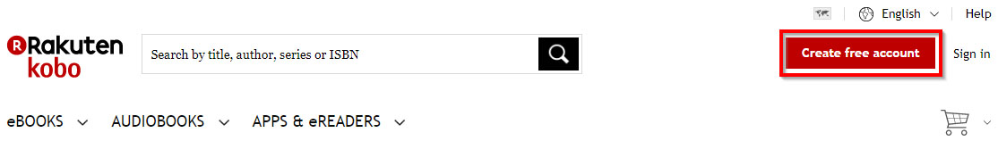 3. Независимо от того хотите ли Вы просто просмотреть доступную бесплатную часть книги или сразу купить ее, Вам нужно будет зарегистрироваться на сайте Kobo создав свой аккаунт. Проще всего сделать это сразу на главной странице нажав на кнопку "Create free account" (Создать бесплатный аккаунт).