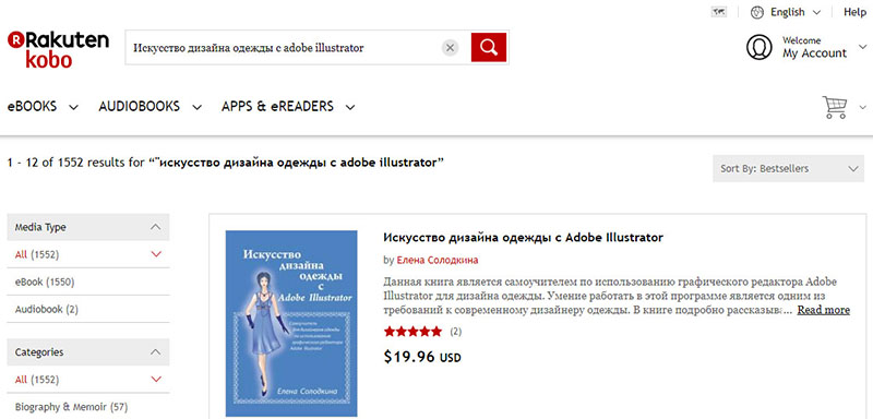 4. В качестве примера рассмотрим покупку моей книги "Искусство дизайна одежды с Adobe Illustrator". Если Вы введете в поле поиска название моей книги, то легко найдете мою книгу в результатах поиска.
