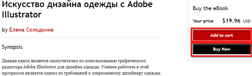 Либо Вы можете сразу купить книгу добавив ее в корзину (нужно нажать на кнопку "Add to cart" – Добавить в корзину) или сразу перейдя к оплате книги (нужно нажать на кнопку "Buy Now" – Оплатить сейчас).