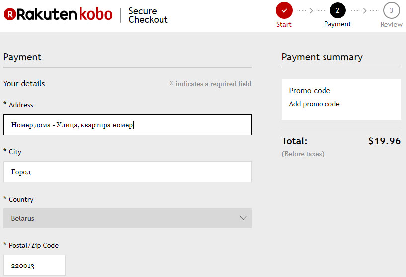 6. Если Вы выбрали например оплату книги сразу, то Вам будет предложено ввести адрес.
