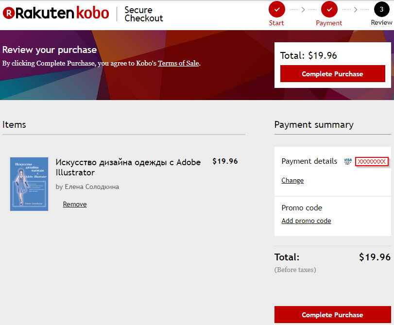 7. На следующей странице "Review your purchase" (Проверьте ваш заказ) Вы можете проверить правильность заказа и, если все в порядке, нажав на кнопку "Complete Purchase" (Завершить оплату) Вы осуществите оплату выбранной Вами книги.