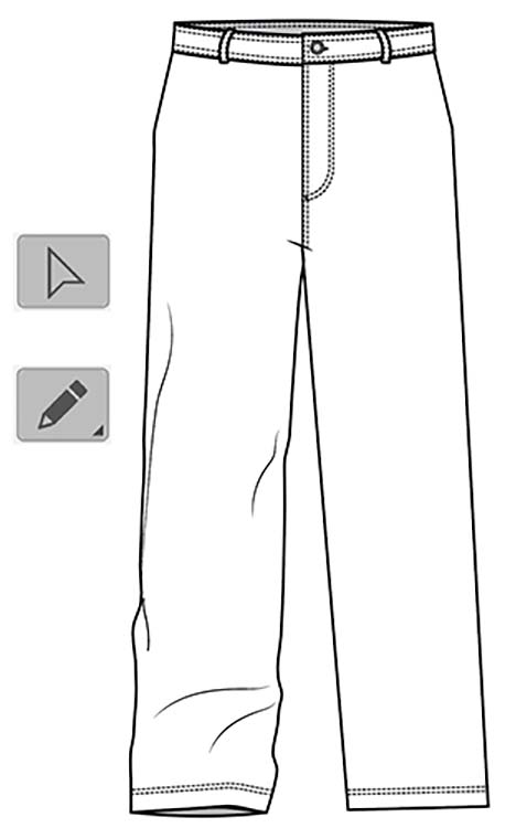 На рисунке ниже половинка брюк справа осталась неизменной, а брючина слева отредактирована при помощи инструмента "Карандаш".
