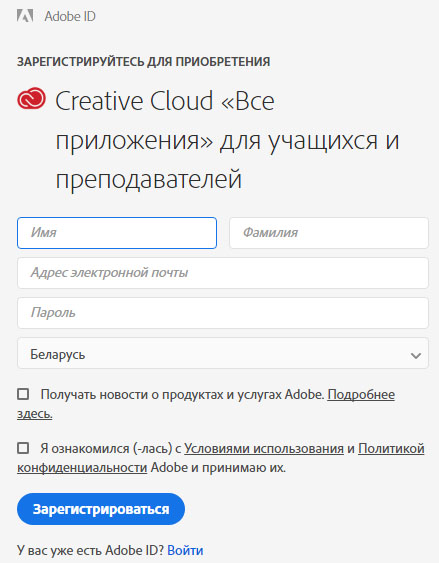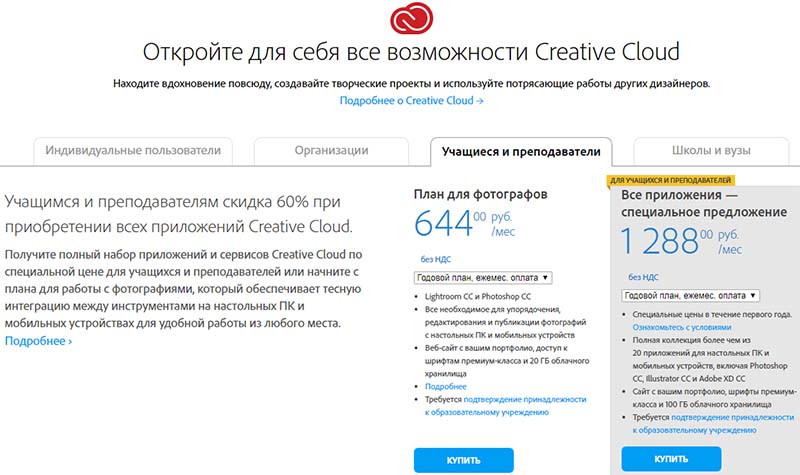 Скидка на Adobe Creative Cloud для преподавателя или студента